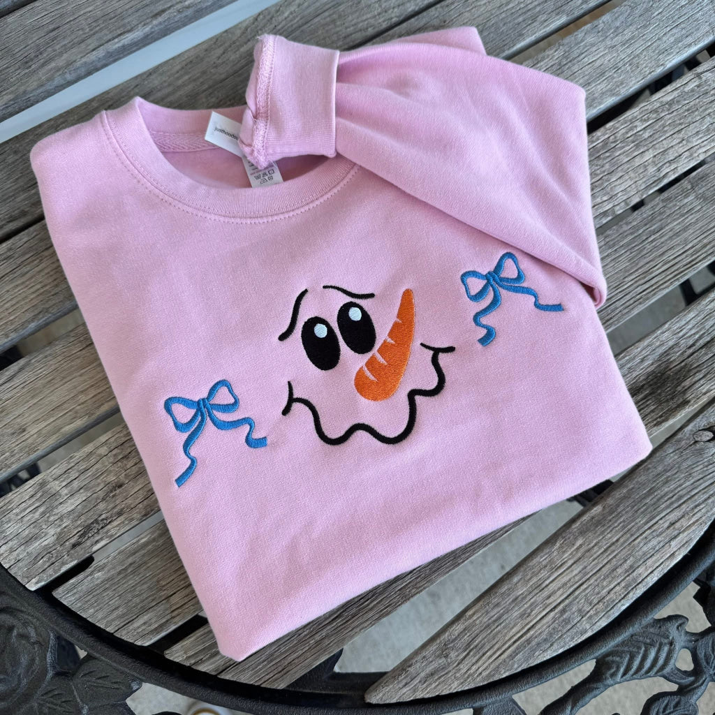 Add some festive and playful style to your wardrobe with our Snowman Face w/Bows! This cute and fun snowman face design will surely bring some cheer to your spirit. Plus, choose from select colors for the Hanes sweatshirt and customize your bows for a unique touch. Get ready to sleigh all day!